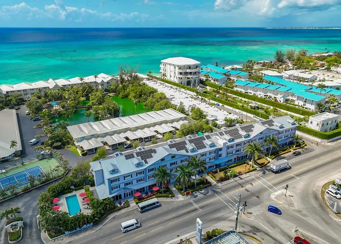 This oceanfront hotel lies near a boat dock for the tourists to begin exploring George Town.
