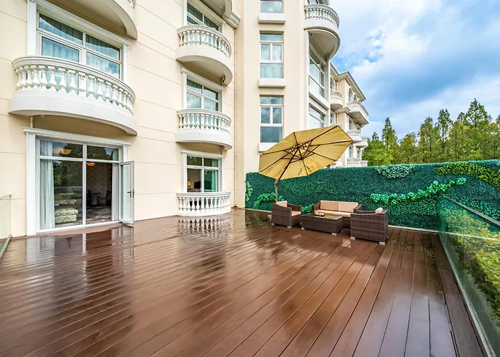 The luxury accommodation is located in Shanghai, approximately a 30-minute drive from Shanghai Metro train station.