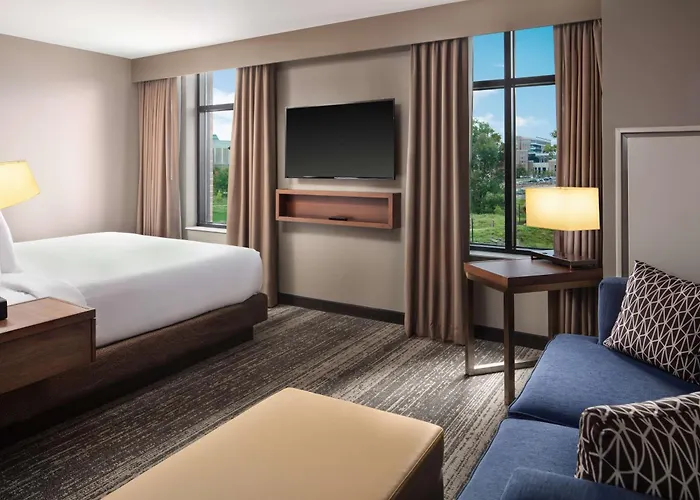 This South Bend hotel is nestled 750 metres from the Boehm Park and 0.9 km from Eck Baseball Stadium. Within a few steps of bars and restaurants, the Embassy Suites South Bend is in the immediate vicinity of the shopping mall "Eddy Street Commons".