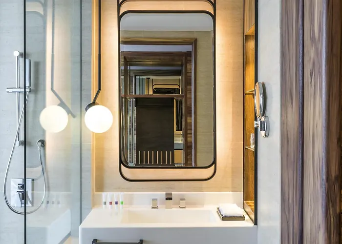 The hotel is near a business district.